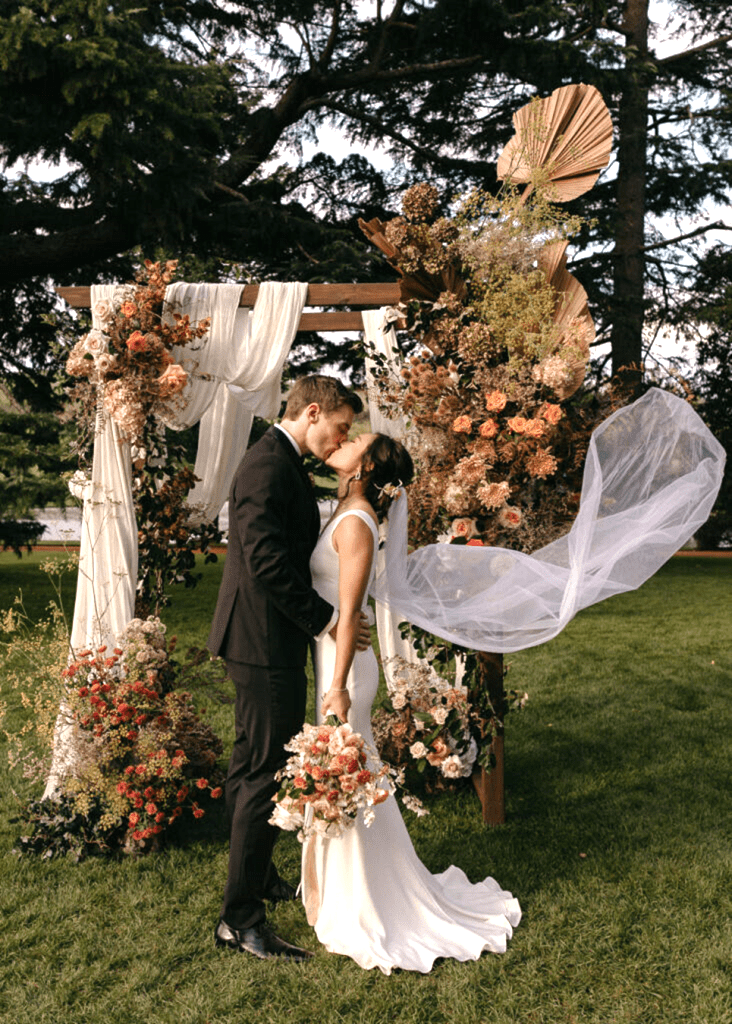 Installations can be as grand as a billowy flower cloud or a flower chandelier dripping with blooms, or as simple as an arbor draped with flower garland. For a grand impression, a flower wall makes a beautiful backdrop for formal photographs and candid photo booth shots. Installations range from $800 for a basic arch-to $10,000 for a flower wall.